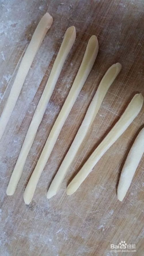 对折好一次的长条,醒一下,然后拿起来,按照纹路,继续拧,再对折,一个麻花便拧好了。