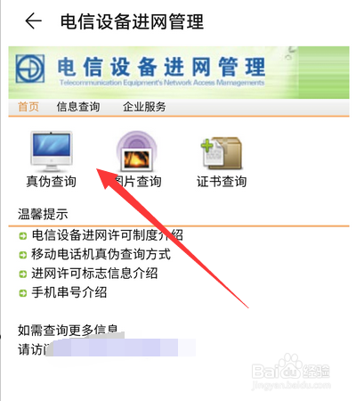 点击真伪查询选项。