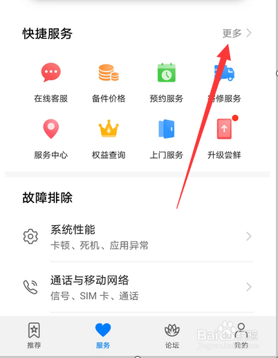 点击快捷服务选项后面的更多选项。