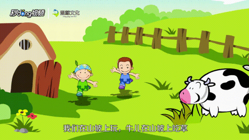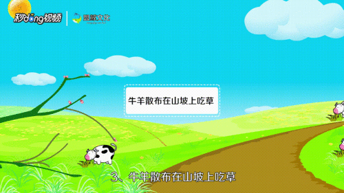 1老人在山坡上犁地,我们在山坡上玩,牛儿在山坡上吃草。