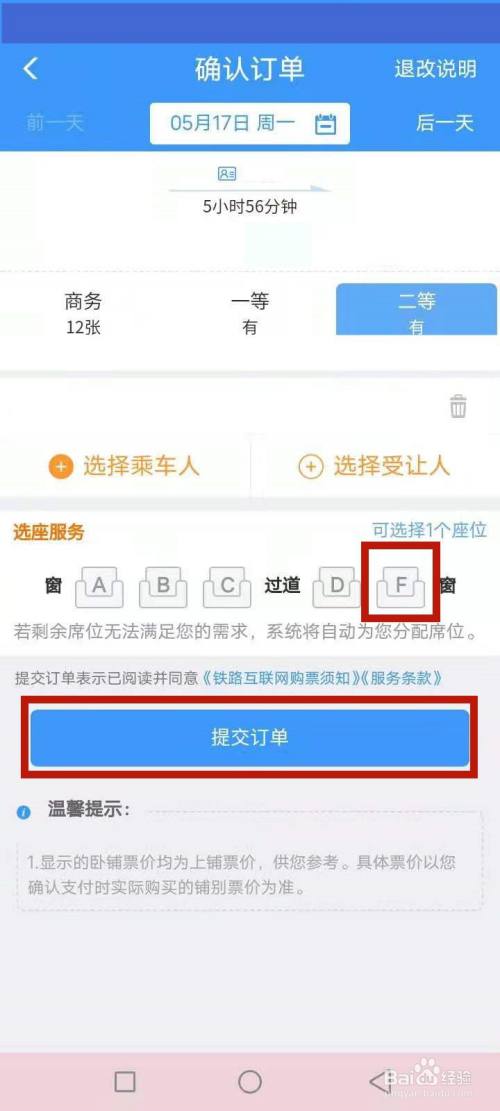 出现选座,点击需要的座位提交,高铁选座位完成。