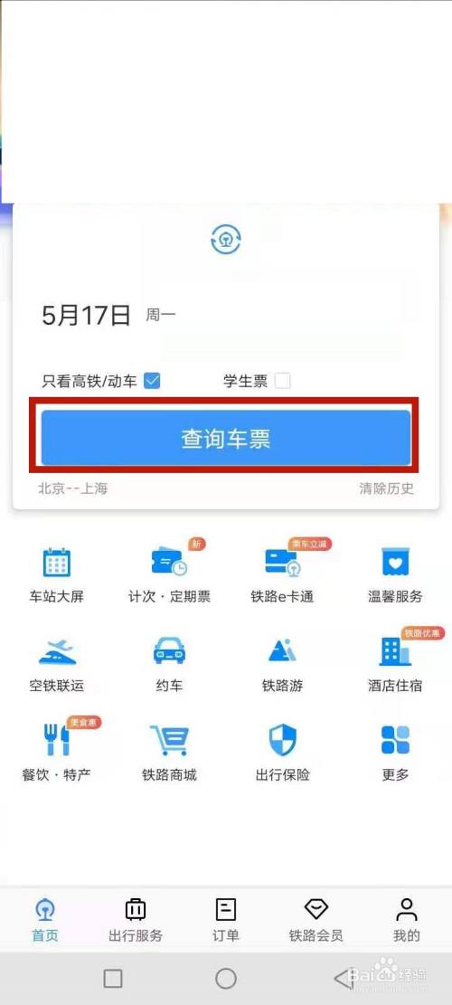 手机打开铁路app,输入起始地和目的地,选择高铁,点击查询。