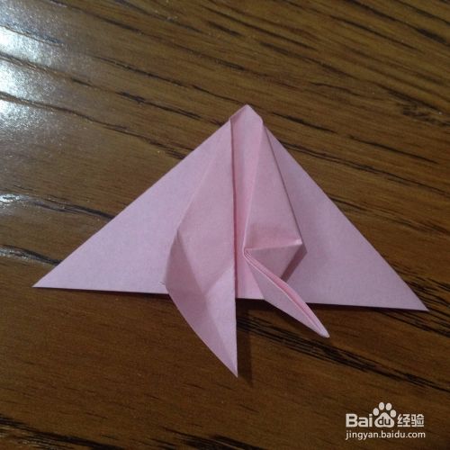 取其中一面,图所示折好,不要使桃子顶部过尖。