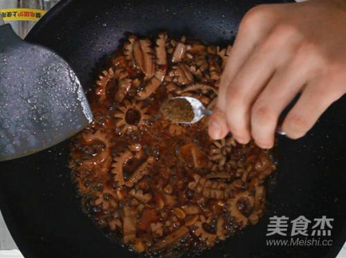 7添加半勺花椒粉,鸡精一起快速翻炒入味