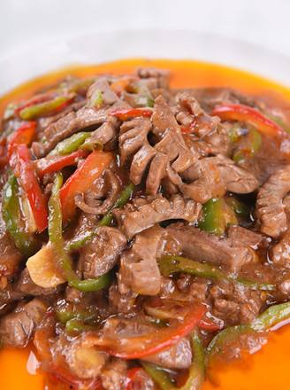 8最后放入炒好的青红椒丝,加入勾兑好的红薯粉,快速翻炒均匀即可起锅