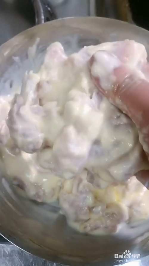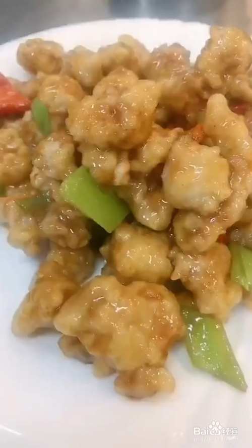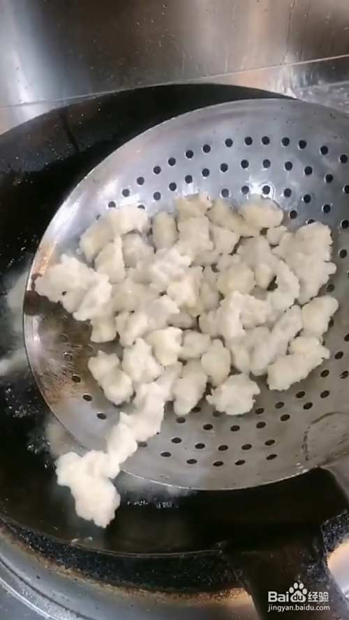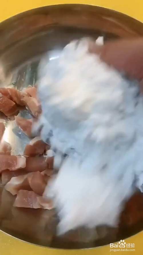 200克猪肉切成大丁,加入50克土豆淀粉,50克清水抓拌均匀加上10克油抓匀备用。