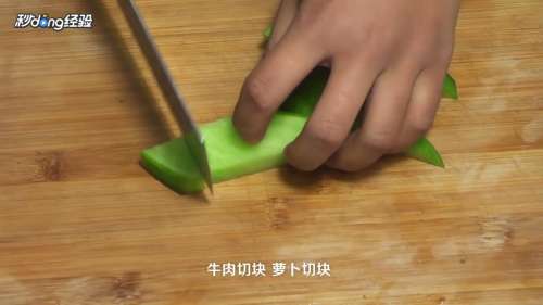 将牛肉和萝卜切块。