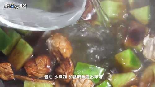 锅中放油,葱,姜片,牛肉,萝卜,酱油,水煮制,加盐调味盛出。