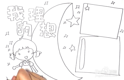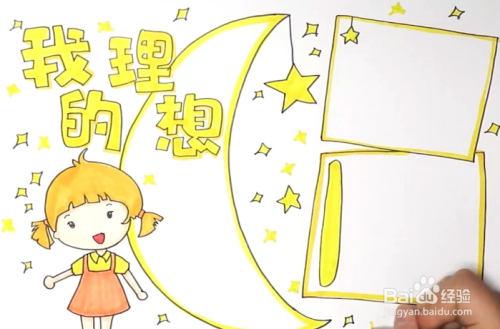 最后在月亮和文字框内加上横线,我的理想手抄报就完成了。