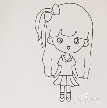 继续画上小女孩的裙子,裙子是百褶短裙,双腿笔直站立着。