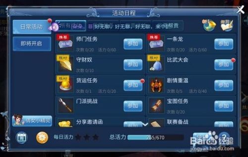 日常任务:师门、一条龙、剧情重温、门派挑战。