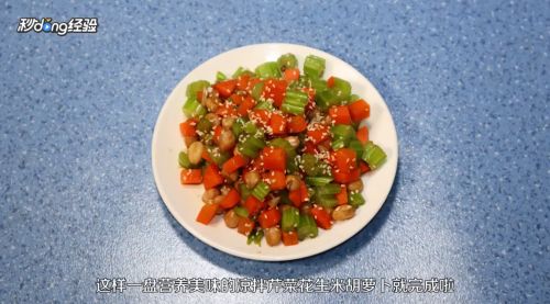 8这样一份营养美味的凉拌芹菜花生米胡萝卜已经完成了。