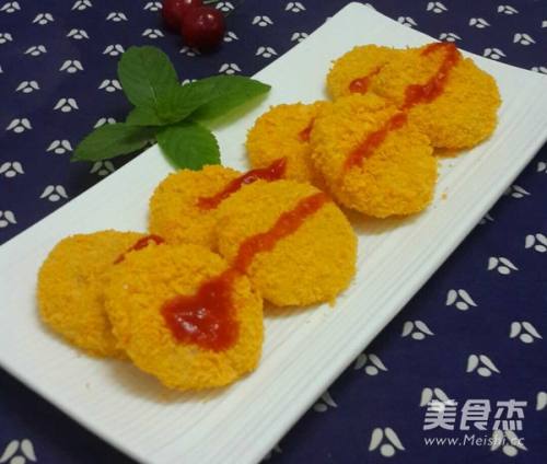 5放入装面包糠的碗里,两面均匀沾满面包糠