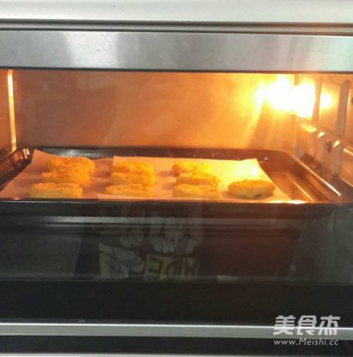 6依次沾好面包糠,放入烤盘中