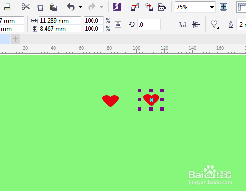 属性栏中找到心形图形,画出一个心形。填充颜色复制一个心形。
