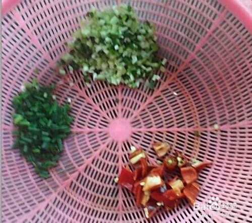 接着,把洗的“葱”.“红椒”分别“切碎”即可。如下图所示