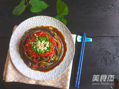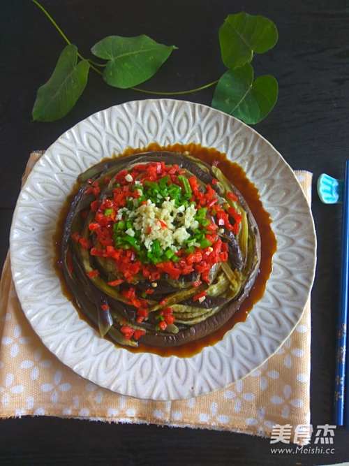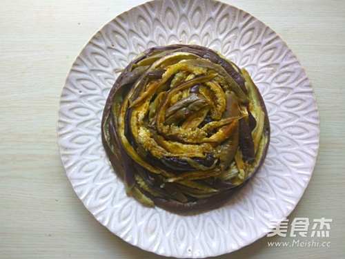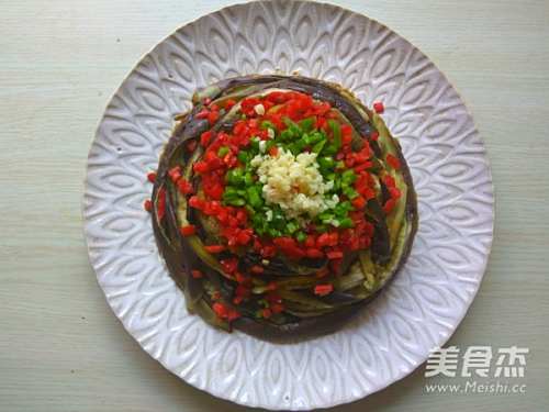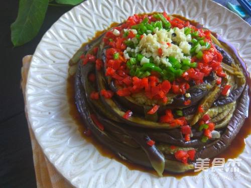 5将蒸好的茄子撕成条,围成圈码在盘内