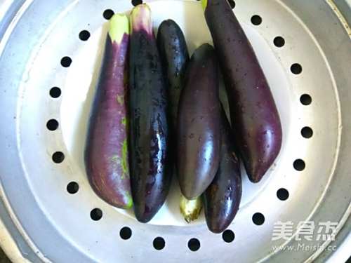 3蒸锅加水烧开,放入茄子,盖上锅盖,蒸熟(不知道是否熟了,可以用筷子扎一下,轻松扎透就是熟了)