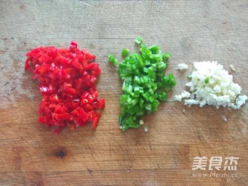 2青红尖椒切末,大蒜切末