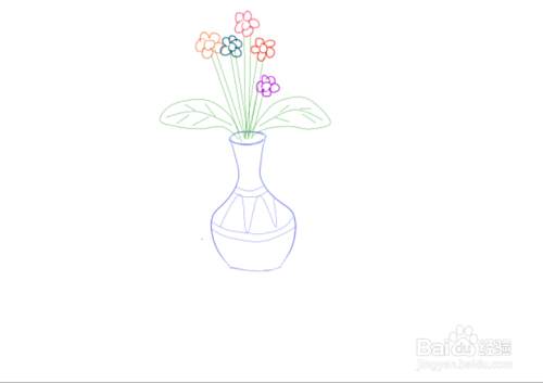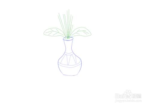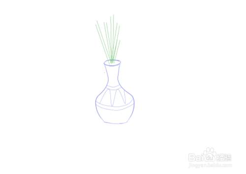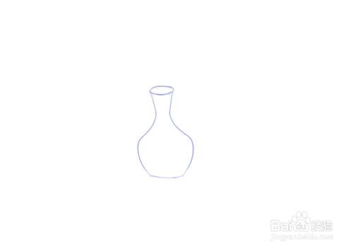 接着,用蓝色彩色笔画出曲线线条,即画出花瓶的瓶身。如图所示。