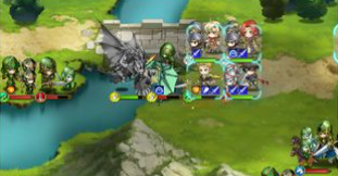 第4回合,怪引过来之后是这种站位,龙卷风陨石雷丁发呆,奶骑上进击雪莉收掉1个水兵打残第2个,飞兵比水兵先动,所以第2个飞兵打不到我们,第2个水兵和第1个飞兵会被雷丁反死。