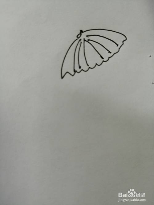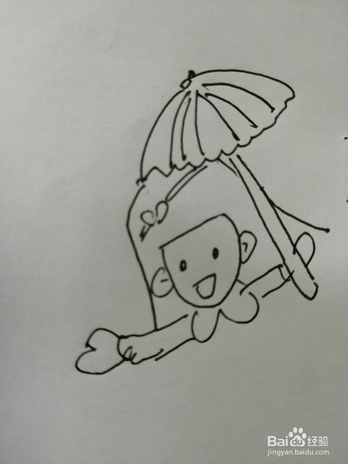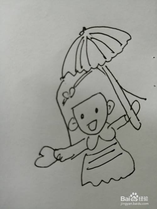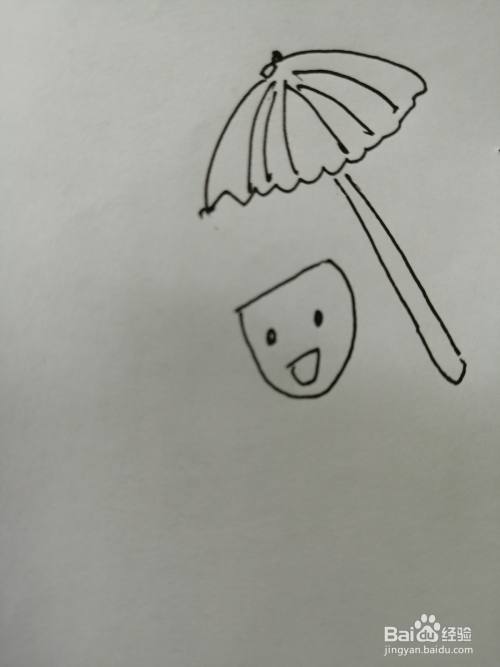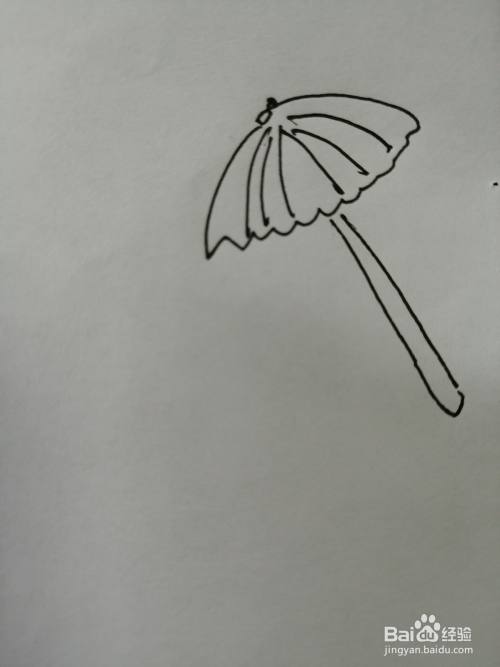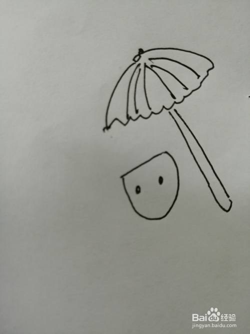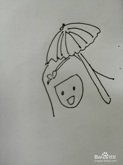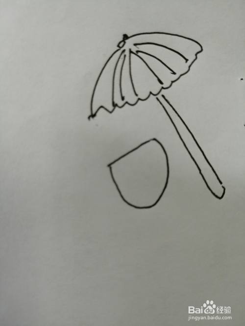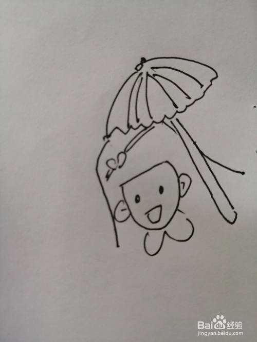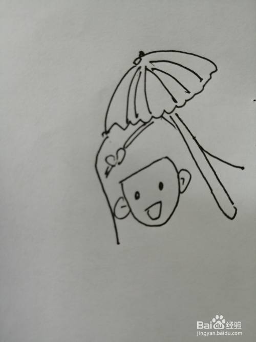 第一步,我们先把可爱的小女孩的手上的雨伞画出来,注意雨伞细节的画法。