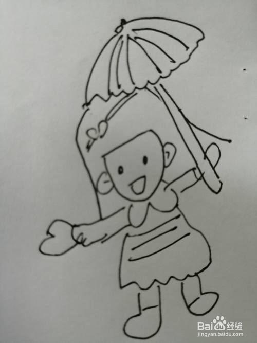 第七步,最后把可爱的小女孩的两条腿画完整,可爱的小女孩就画好了。
