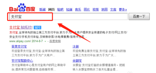 首先,打开桌面的浏览器,在百度输入栏里输入支付宝,点击搜索一下,进入搜索结果界面,找到支付宝官网,点击进去。