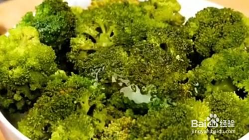 将蒸好的西兰花倒入碗中,倒入芝麻油,美味的食物就做好了。