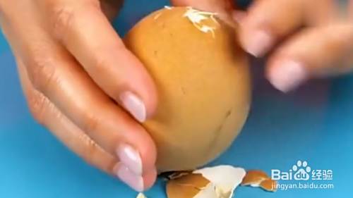 将煮熟的鸡蛋的前后的壳剥开,放在嘴前对准一边吹,鸡蛋就会完整的从壳里掉出。