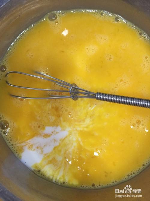 打好两个鸡蛋,加入少许牛奶可以让蛋皮更香软哦