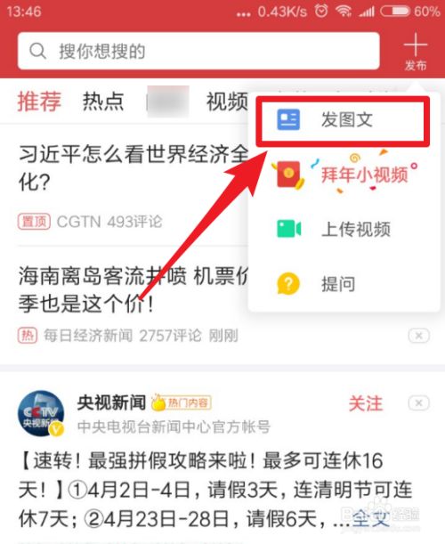 然后选择发图文,点击进入编辑页面。