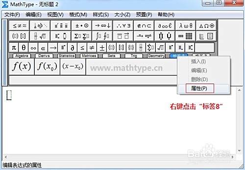 对已经分好类的可以不用进行自定义,对于后面两个标签我们将常用公式保存的地方一般是在“标签8”和“标签9”中,右键点击“标签8”,选择“属性”。