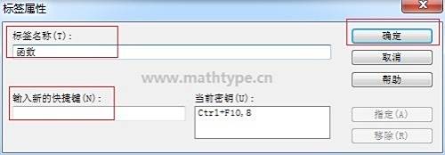 点击“属性”后会弹出“标签属性”的对话框,在“标签名称”这一栏中输入你所需的标签名称比如“函数”,在快捷键中也可以输入你想要的快捷键组合,然后点击“确定”。