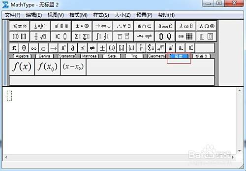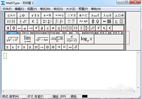 将MathType公式编辑器打开后,会看到MathType模板下面有一行分类的标签。如果MathType标签栏消失了,可以点击“视图”——“标签栏”。