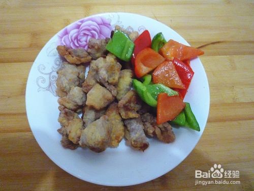 锅中油烧制五六成热 放入裹好淀粉的肉片炸制。炸至定型捞出,锅中油温升至8成热,再次放入肉片复炸至酥脆捞出。