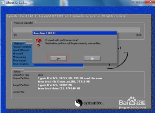 10、点击OK只有会弹出question:(1823),然后下面一堆英文,选择yes即可