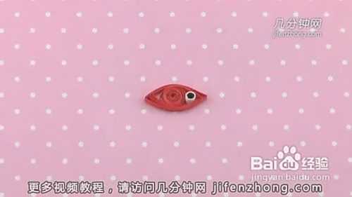 在黑色紧卷的外围,继续用白色衍纸做紧卷,到适当大小,剪去剩余的衍纸,用液体胶固定。这样的鱼的眼睛就做好了。
