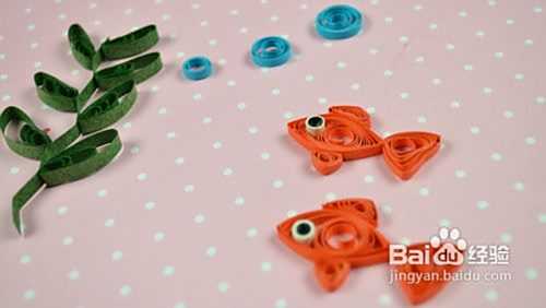 剪取一半长度的衍纸。制作一个箭头卷,作为鲤鱼的尾巴。