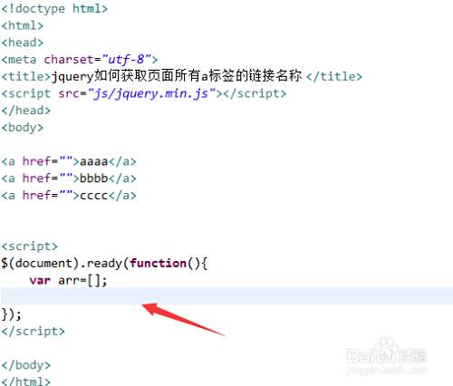 3、在function方法内,定义一个数组变量arr,用于保存获得的链接名称。