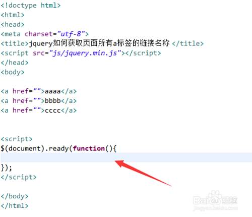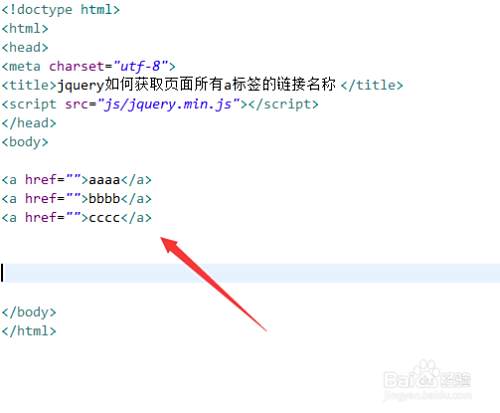 新建一个html文件,命名为test.html,用于讲解jquery如何获取页面所有a标签的链接名称。
