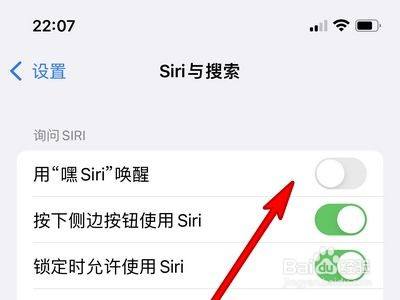 打开【嘿Siri唤醒】右侧的开关,只要对着手机说出语音指令“嘿Siri”即可唤醒。