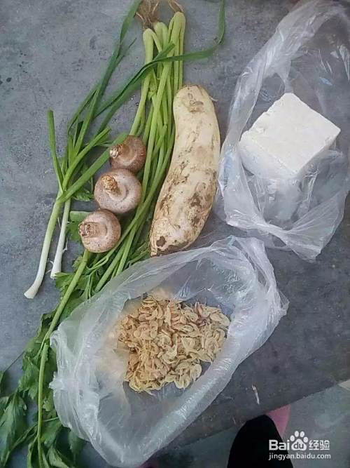 准备食材,将豆腐、虾仁、猪肉、芹菜、大蒜、葱、萝卜、香菇分别洗净切好,待用