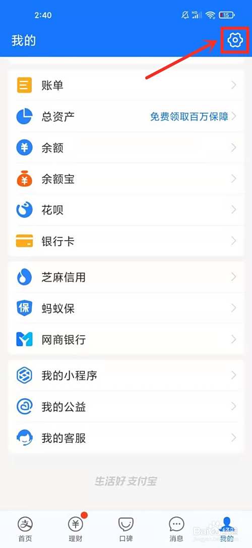 打开支付宝APP首页,点击右下角【我的】,进入我的界面。