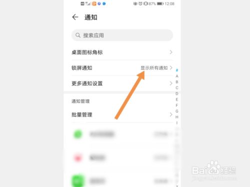 3在通知选项的第2列就是锁屏通知,现在显示的是显示所有通知,点击它,