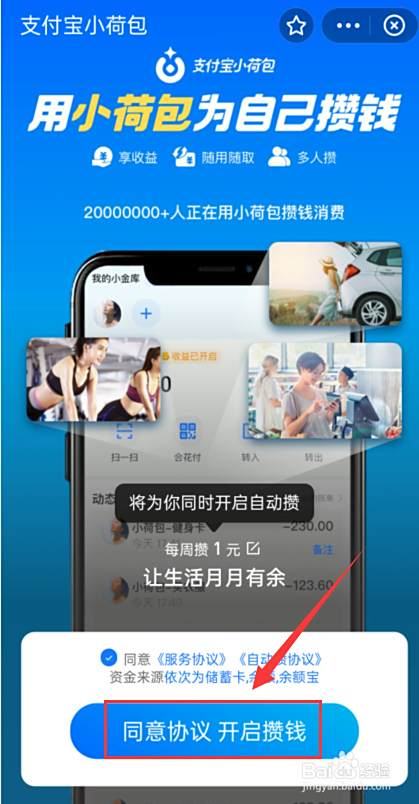 最后点击一下页面下方的同意协议 开启攒钱进入操作即可。