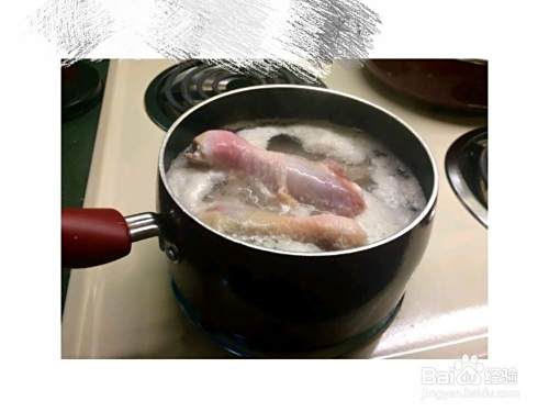 鸡腿入开水锅中煮去血水。