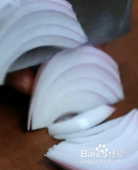 首先将一个洋葱切成四半,去掉洋葱心,再竖切成丝