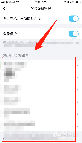 第六步,在设备登录管理页面中,底部即是通过安全登录验证的设备列表。