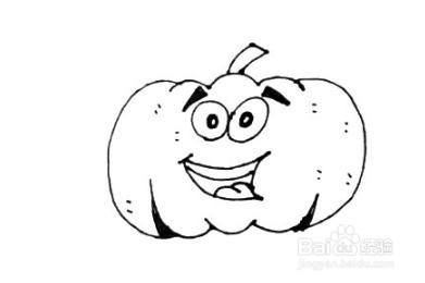 先画两条弯弯的曲线,吧南瓜的轮廓勾勒出来。